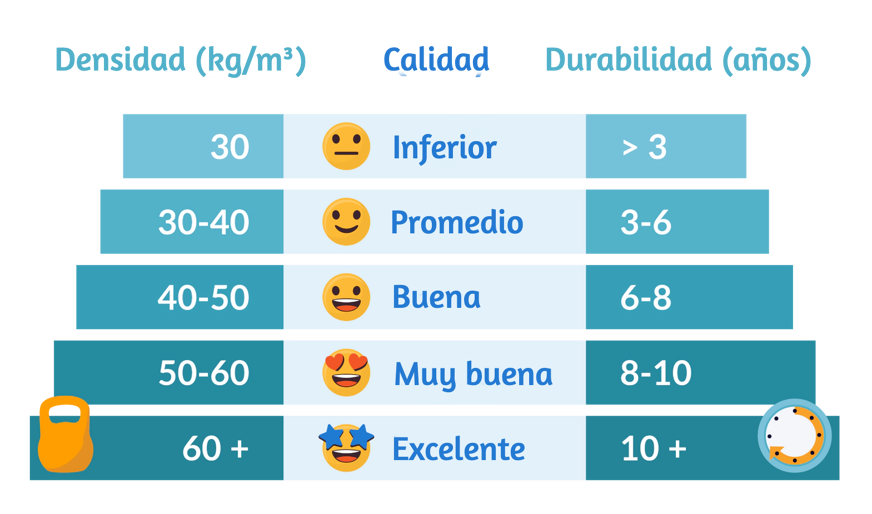 Cuanto mayor sea la densidad de las espumas, mayor es la calidad del colchón.