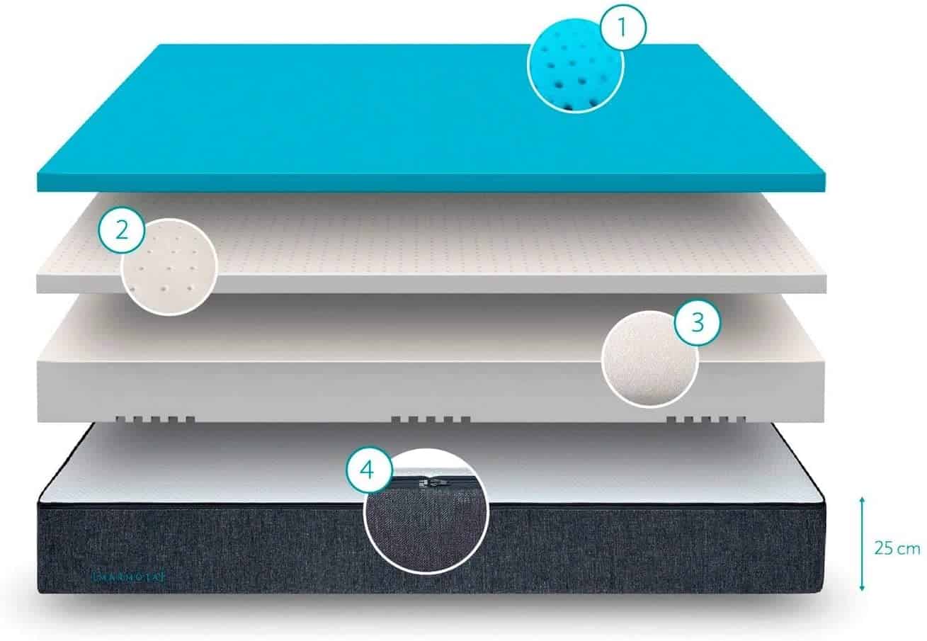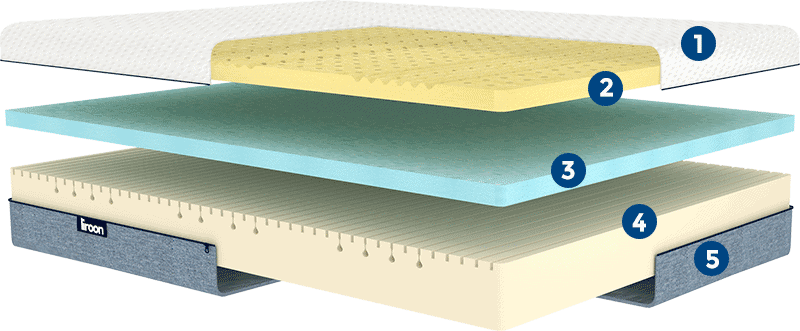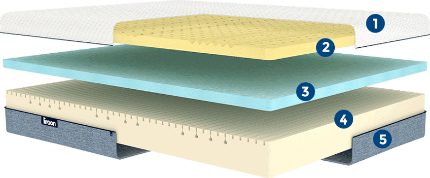 3 capas: - Látex natural - Espuma visco Nube Liroon - Espuma fría de alta resiliencia |