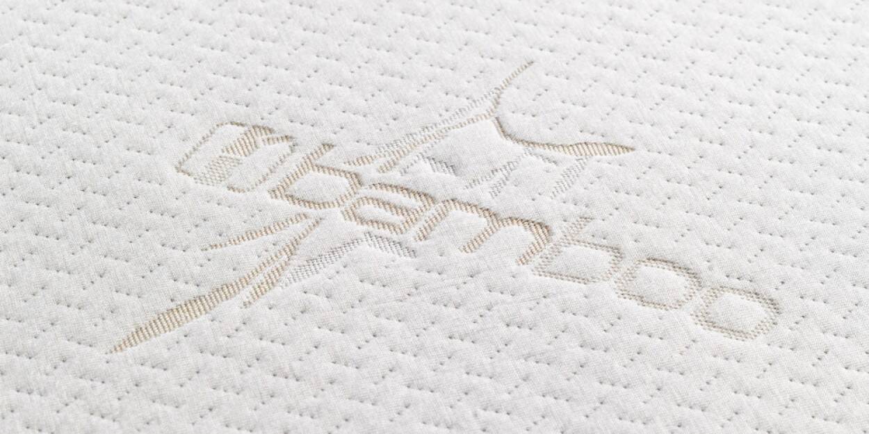 La funda de este colchoncillo está hecha de un agradable y suave tejido de Bambú, fibra natural altamente transpirable e hipoalergénica.