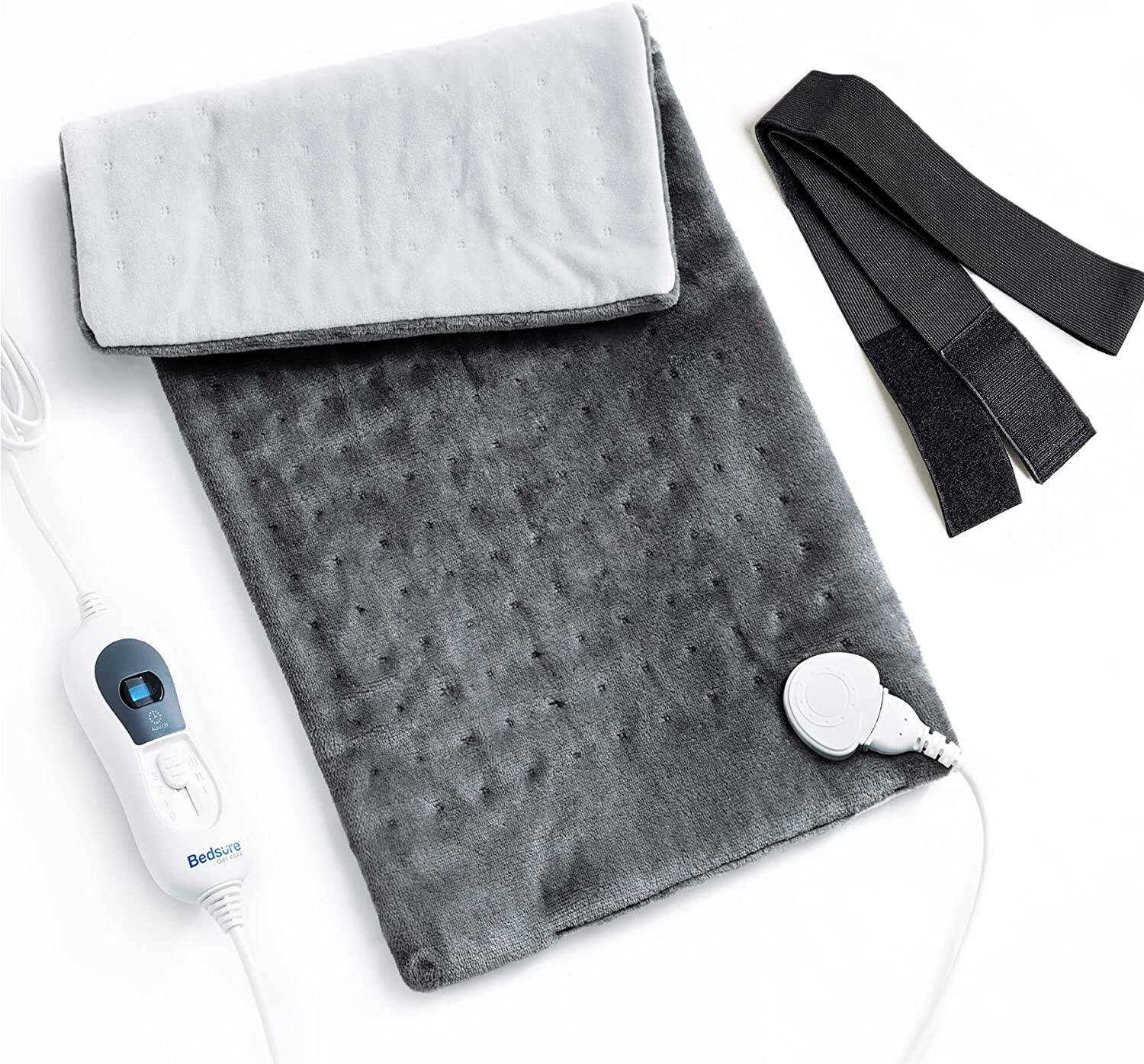 La manta eléctrica lumbar Bedsure sirve como almohadilla térmica para aliviar contracturas musculares y dolores lumbares.